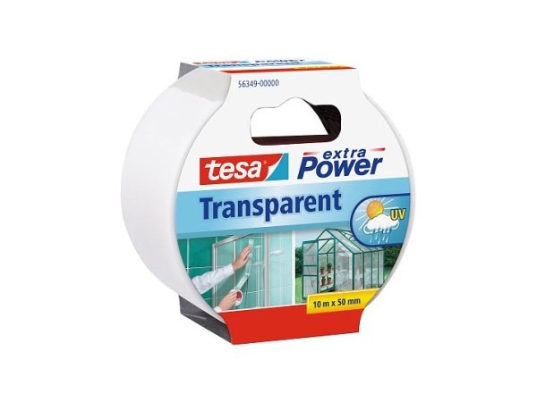 Tesa monteringstape Extra Power Transparent 10 meter x 48 mm er en klar tape, der klæder på en lang række flader. Tapen er ideel til reparation af transparente plastmaterialer samt midlertidig reparation af revnet glas, og så er den både vand- og vejrbestandig.