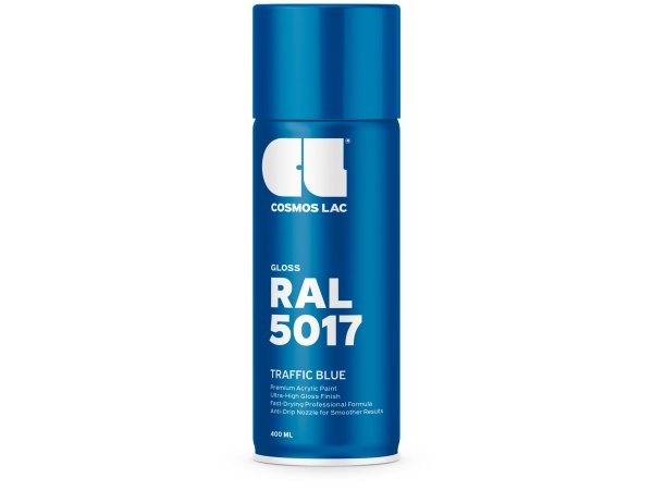 Højkvalitets spraymaling fra Cosmos LAC serien RAL i farven 5017 Traffic Blue med en flot, højglans finish. Malingen er baseret på 100 % akryl og er udviklet til både professionelle og gør-det-selv projekter, hvor der stilles krav til holdbarhed, farvenøjagtighed og hurtig tørretid.