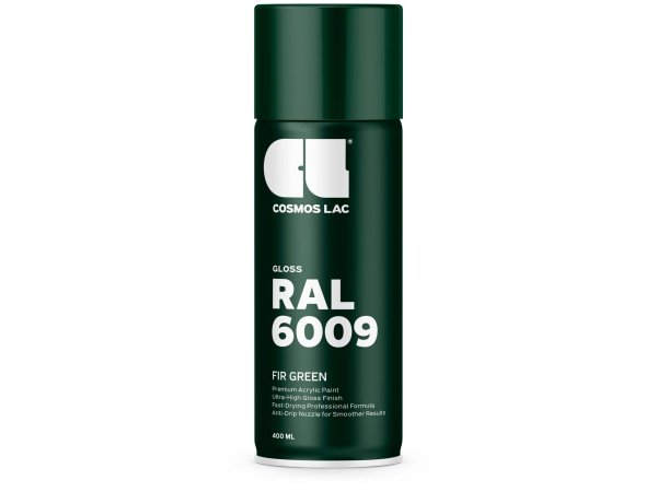 Højkvalitets spraymaling fra Cosmos LAC serien RAL i farven 6009 Fir Green med en flot, højglans finish. Malingen er baseret på 100 % akryl og er udviklet til både professionelle og gør-det-selv projekter, hvor der stilles krav til holdbarhed, farvenøjagtighed og hurtig tørretid.