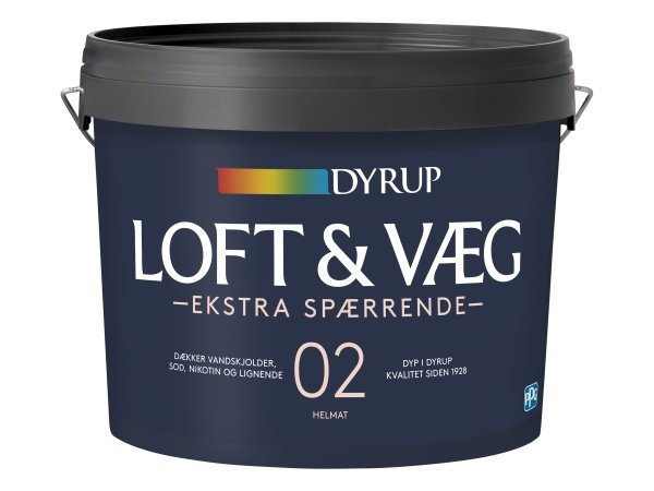 Dyrup væg & loft 2 ekstra spærrende 4,5 liter hvid er en fremragende maling, der sikrer flotte vægge og lofter. Dyrup væg & loft 2 er ekstra spærrende, hvorfor denne er perfekt, hvis du oplever genstridige vandskjolder, guldnet træ, der slår igennem og lignende.