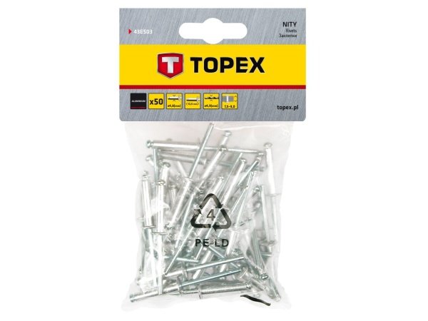 Specifikationer for TOPEX blindnitte alu, 50 stk., 4,8 x 12,5 mm