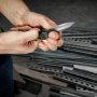 Fastback foldekniven fra Milwaukee har hul til sikringsline for let fastgørelse af Milwaukee sikkerhedsudstyr, som kan bruges i højden.