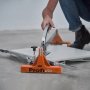Skæreren tilpasser sig automatisk flisens tykkelse (op til 15 mm) og sikrer at emnet ligger fast vha. støttearme, som giver et stabilt underlag, og skridsikre gummifødder. Dertil har skæreren en kraftig glideskinne, som sikrer en optimal kraftoverførsel.