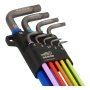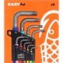 Bahco Unbrako®-nøglesæt med 9 farvede nøgler forsynet med kugle, lang metrisk model. Nøglerne har Easy fit-funktion som giver sikker fastholdelse af nøglerne. De er ligeledes meget lette at tage ud og indsætte igen vha. det nemme monteringssystem. Sprøjtestøbt greb med soft-touch-fornemmelse giver et behageligt og skridsikkert greb ved enhver anvendelse og er samtidig oliebestandig.