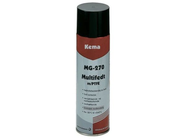 Kema MG-270 multifedt er et lugtfrit og højtryksbestandigt smøremiddel til vedligeholdelses-, sukker-, papir- og tekstilfremstillingsindustrien. Det anvendes til dele som udsættes for stærke svingninger og rystelser, f.eks. åbne tandhjul, tandstænger, kædehjul, kæder og dør- og vinduesrammer.