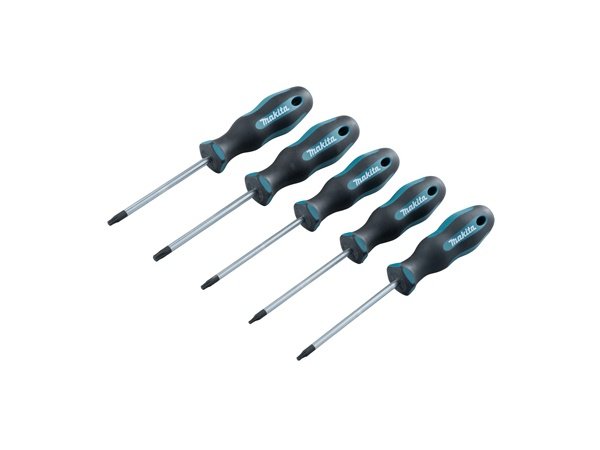 Makita skruetrækkersæt E-10543 med 5 stk. skruetrækkere med olieresistent gummi og ergonomisk anti-slip greb. Magnetisk black-tip garanterer perfekt fit i kærven.