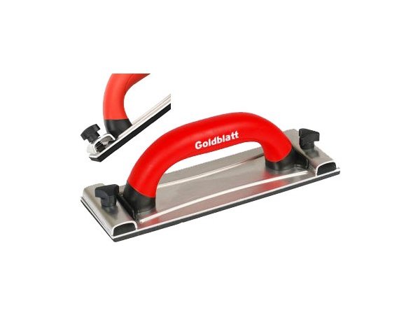 Goldblatt slibebræt i forstærket aluminium for øget holdbarhed. Behageligt håndtag med blødt greb reducerer træthed i arme og hænder.