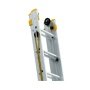 Stigen er udstyret med hjul til at køre på væggen og reb til at hejse stigen. Herudover er trin, vanger og kraftige beslag i helpresset aluminium.