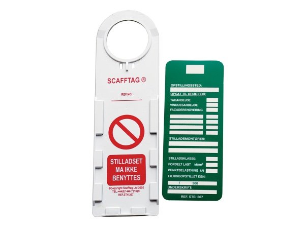 Materielhuset sikkerhedskilt til stilladsopstilling består af 1 stk. holder og 1 stk. grønt skilt.