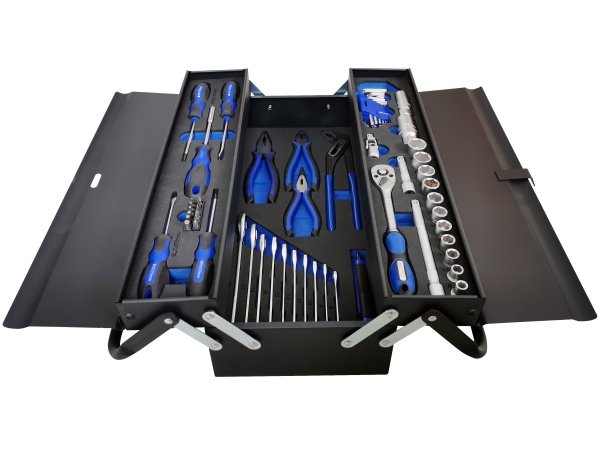 BaTo værktøjskasse med 3 rum og 60 dele højkvalitets værktøj. Sættet leveres i smart værktøjskasse, som du nemt kan have med få farten.
