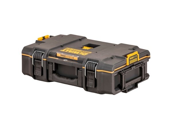 Dewalt ToughSystem 2.0 DS166 værktøjskasse har patenterede sidebeslag, der tillader betjening med én hånd. Det har også 2-delt metalwire frontbeslag for ekstra holdbarhed, så værktøjet sikres inde i kassen. Denne værktøjskasse tilbyder 20% mere opbevaringsplads til værktøjer, når den bruges som en del af et tårn med 2.0 DS300 og DS400. Den er IP65 beskyttet til støv- og vandbestandighed og har en belastningskapacitet på 50 kg. ToughSystem 2.0 værktøjskasse er kompatibel med alle ToughSystem-produkter.