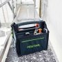 Med Festool værktøjstaske/systainer SYS3 T-BAG M kan du holde orden og let transportere håndværktøj og tilbehør. Festool værktøjstaske/systainer er stabil og har meget plads til værktøj med indvendige lommer, der kan placeres helt individuelt.