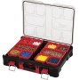 Milwaukee Packout™ organiser tilbehørskuffert er med 10 aftagbare beholdere til søm, skruer osv. for at forhindre indholdet i at blive blandet sammen under transport.