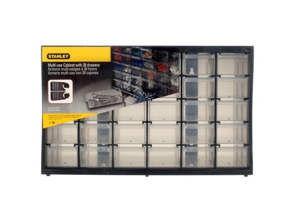 Stanley organiser med 30 skuffer til opbevaring af smådele. Organiseren kan hænges op væggen og er i en slidstærk ramme. Den er nem at stable og giver hurtigt et komplet opbevaringssystem og med fleksible transparente skuffer, som giver et hurtigt overblik af indhold.