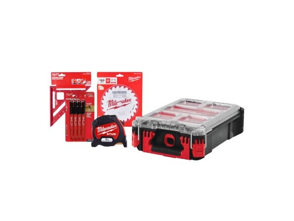 Milwaukee værktøjssæt er perfekt det perfekte sæt til arbejde med træ. Sætter består af 8 forskellige dele. Der medfølger speedvinkel til præcist hak til parallel markering, målebånd i høj kvalitet, træskærende rundsavklinge, der er perfekt til alle træsorter inklusive blødt/hårdttræ, krydsfiner, lamineret spånplade, melamin og MDF.