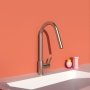 Gusto køkkenarmatur C-tud m/udtræk er fremstillet i et elegant og moderne design, og den er udstyret med FirmaFlow og skjult luftblander.