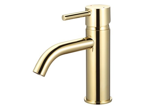 Bluerain Amunu håndvaskarmatur i poleret messing. Armaturet er i et enkelt, stilrent og slankt design med en nedadgående tud, der gør den praktisk at anvende.