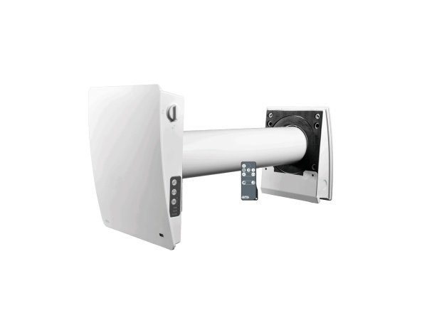 Enheden er udstyret med en indvendig komfortskærm, som leder indblæsningsluften opad og reducerer trækgener. Den støjsvage motor er placeret dybt i røret, og ekstra lyddæmpning giver en behagelig og diskret drift. Den udvendige stormskærm sørger for effektiv ind- og udblæsning af luft.