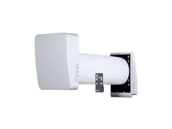 Motoren er placeret dybt i røret for lavt lydniveau, og en lyddæmpningsmåtte reducerer støj yderligere. Den udvendige stormskærm sikrer effektiv luftindtag og afkast, selv i hårdt vejr. Enheden bidrager til at reducere radon, fugt og CO₂ og giver en energibevidst udluftning uden behov for at åbne vinduer.